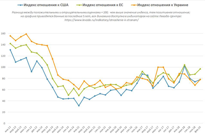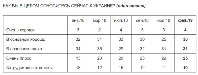 Водночас у лютому 2019 року кількість українців, які добре, або дуже добре ставляться до Росії, зросла на 9 процентних пунктів і становить 57%.