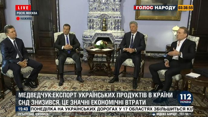 Прем'єр Росії Дмитро Медведєв проводить у Москві зустріч з кандидатом в президенти України Юрієм Бойком і кумом президента РФ Володимира Путіна Віктором Медведчуком.