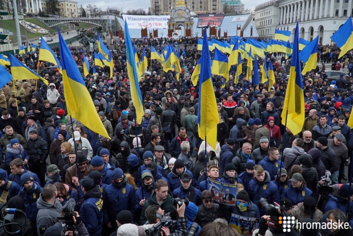 На Майдані Незалежності в Києві понад 2 тисячі прихильників партії "Національний корпус" проводять акцію з вимогою притягнути до відповідальності фігурантів справи про розкрадання в оборонному секторі.