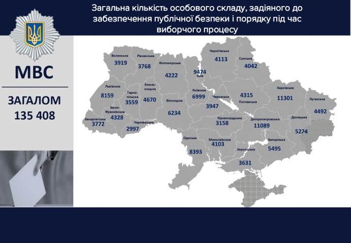 За його словами, до забезпечення правопорядку під час голосування 31 березня залучать понад 135,4 тисяч правоохоронців, з них понад 72,5 тисяч – саме поліцейських.