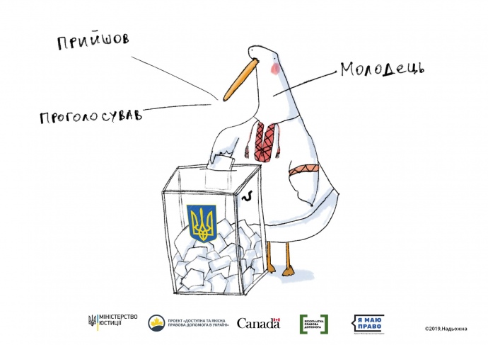 Міністерство юстиції в рамках загальнонаціонального правопросвітницького проекту підготувало відеоролики "Гусь йде на вибори", у яких роз'яснюються права громадян під час виборів.