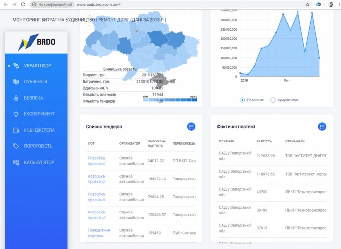 Користувачі зможуть дізнатися, про ремонт доріг у розрізі областей та доріг державного і місцевого значення; про кошти, витрачені на безпеку руху; про тендери, які було оголошено та проведено в областях, та про те, скільки грошей фактично витрачено замовниками.