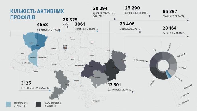 "Перше місце за кількістю активних профілів "Вконтакте" займає Донецька область. Друге - Дніпропетровська. Третє – Київ", - йдеться в опублікованому 27 березня дослідженні громадської організації "Інтерньюз-Україна".