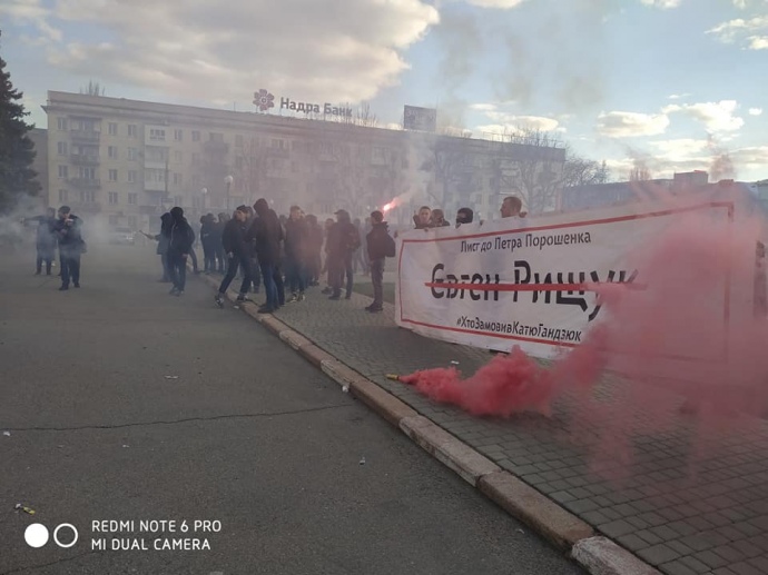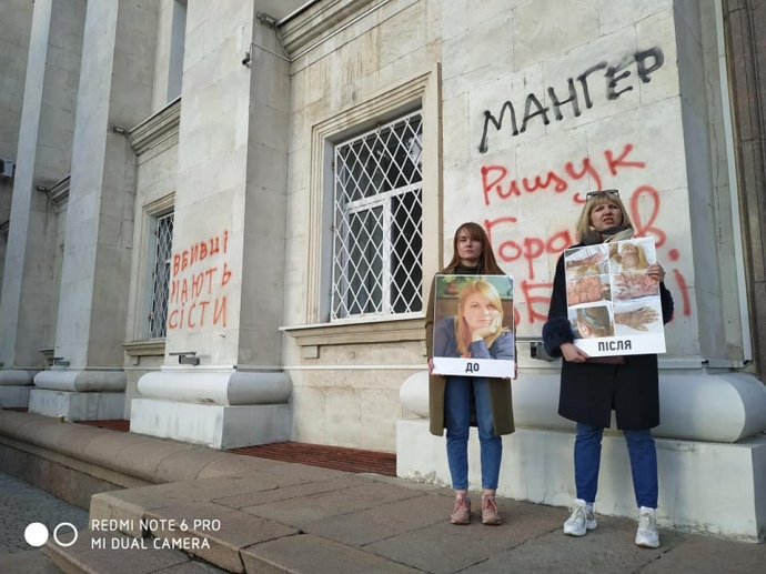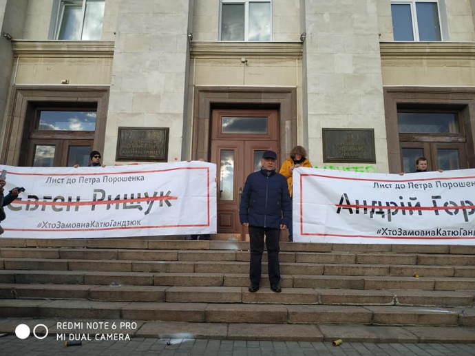 Подруга Гандзюк Марина Хромих додала, що до цієї акції під Херсонською ОДА, як і візитів цього дня під помешкання Мангера і Рищука, їх змусив вдатися попередній досвід - коли "всі зрушення у справі відбуваються лише після чергових копняків активістів".