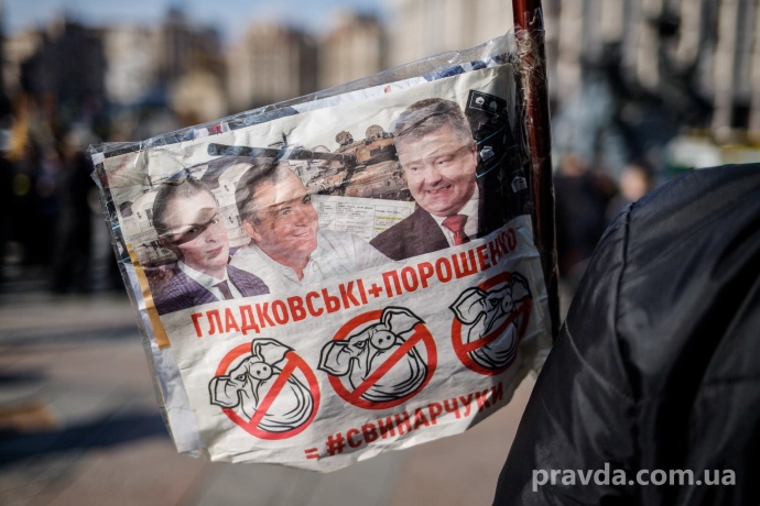 - 25 лютого видання "Bihus.info" оприлюднило розслідування про те, як люди з оточення Петра Порошенка курують розкрадання в оборонній сфері. У розслідуванні фігурував син заступника секретаря РНБО Ігор Гладковський.