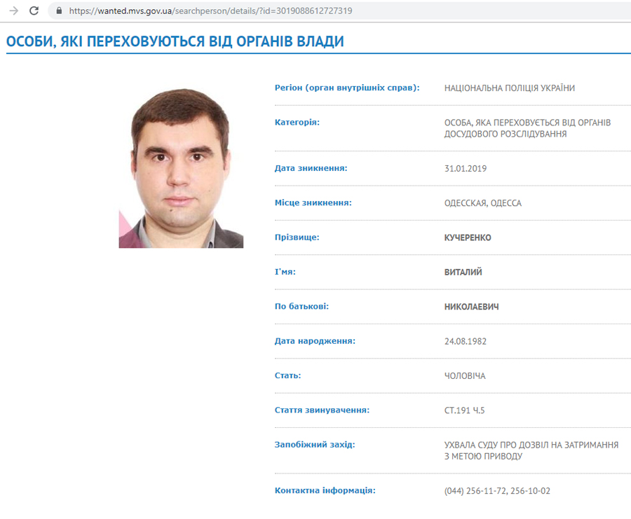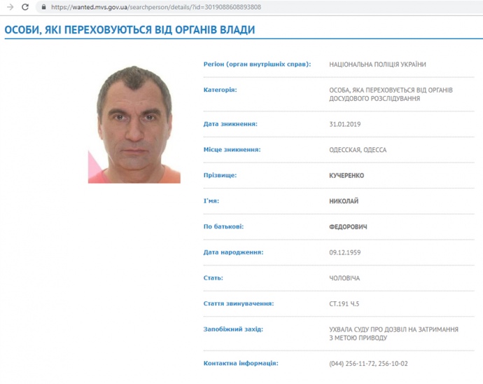 Згідно з розшуковим обліком, суд дозволив затримати Миколу і Віталія Кучеренків з метою приводу.