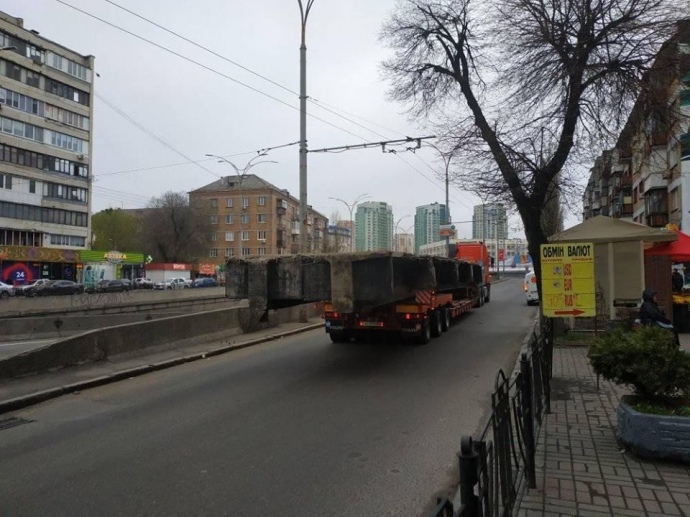 Столичні жителі наразі знімають процес демонтажу мосту і те, як перевозять його величезні частини містом.