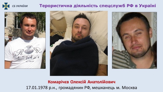 "Це керівник російської диверсійної терористичної групи, який безпосередньо закладав вибухівку під авто українського розвідника, – громадянин Російської Федерації Комарічєв Олексій Анатолійович, 1978 року народження", – повідомив він.