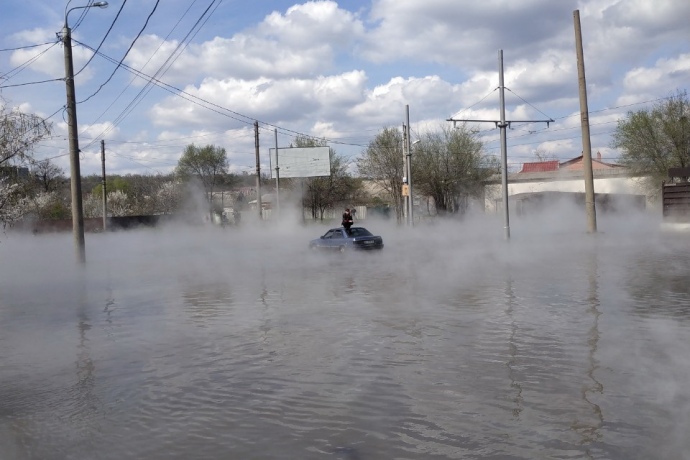 У Київському районі Харкова стався прорив труби з гарячою водою, у результаті чого затопило проїжджу частину разом з автівкою "Mazda 626" з водієм і пасажиром.