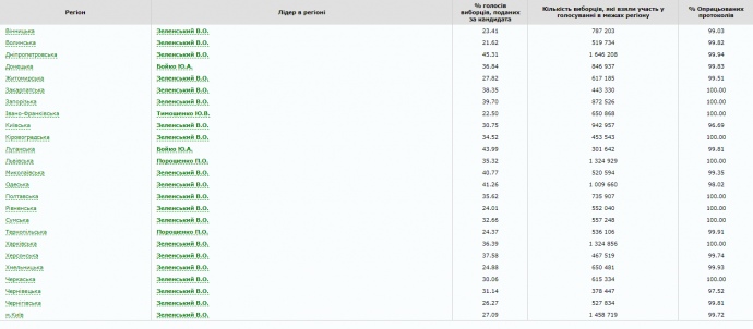 Згідно інформації на сайті ЦВК, залишилося опрацювати невелику кількість протоколів із Вінницької, Волинської, Дніпропетровської, Донецької, Житомирської, Київської, Луганської, Миколаївської, Одеської, Тернопільської, Херсонської, Хмельницької, Чернівецької, Чернігівської областей та з територіального виборчого округу №217 міста Київ (Оболонський район).