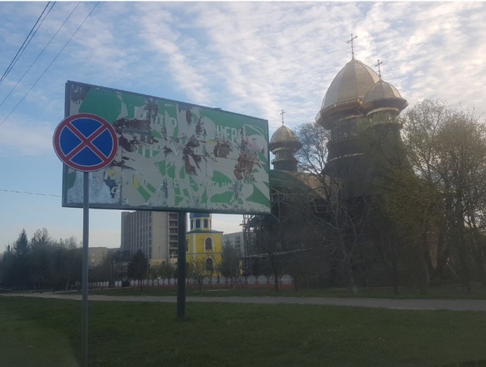 Також є борди "Зустрінь весну без пороху!", які також були використані ще напередодні першого туру.