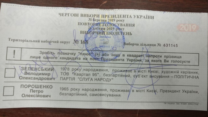Більше 2% виборців, які взяли участь у другому турі виборів президента України між Петром Порошенком та Володимиром Зеленським, зіпсували свої бюлетені.