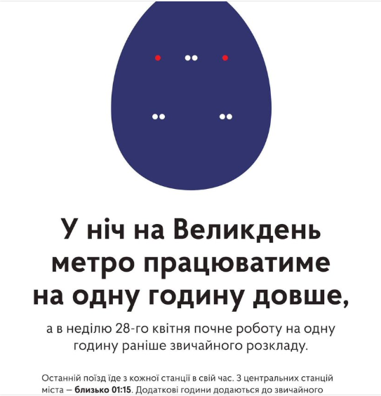 Київський метрополітен нагадує, що у Великодню ніч традиційно працюватиме на годину довше.