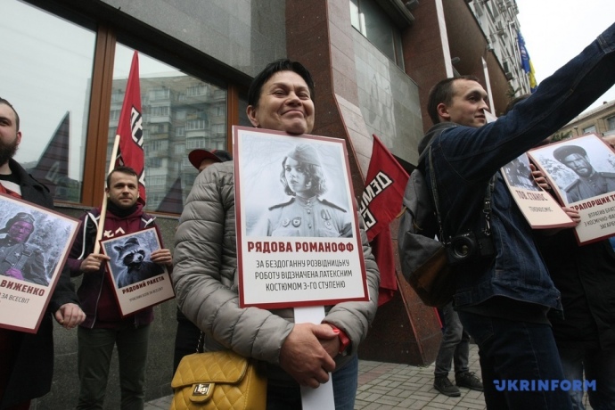 У центрі Києва 100-150 людей взяли участь в акції "Безсмертний Грут" на противагу маршу "Безсмертного полку", приуроченому до Дня перемоги.