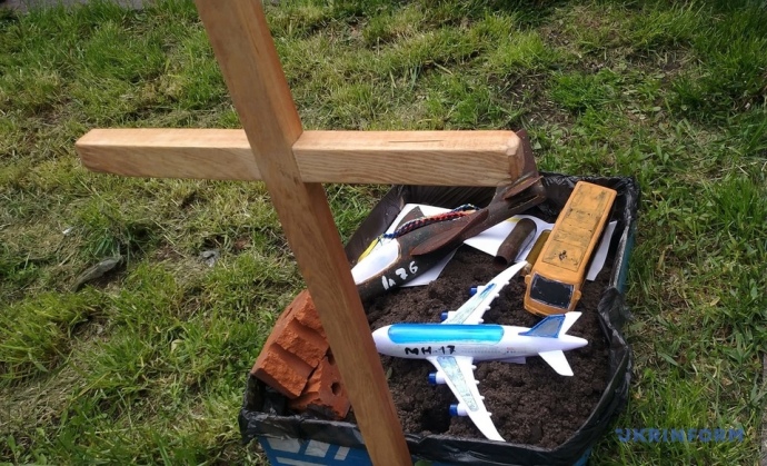 Також учасники заходу тримали в руках макети літака з написом "МН-17", літака "Іл-76", розстріляного бойовиками автобуса у Волновасі як докази кремлівських злочинів на Донбасі, та цеглини, як символи зруйнованих від обстрілів будинків.