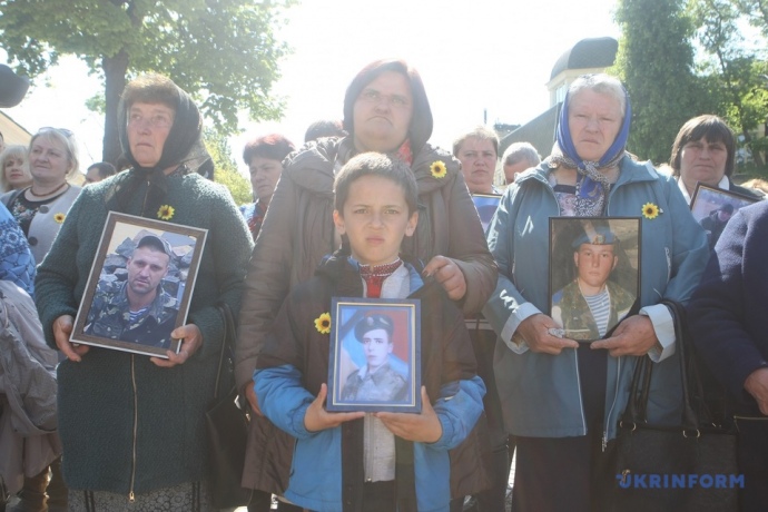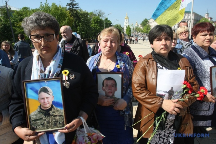 Як повідомляє Укрінформ, у заході беруть участь близько 300 осіб, більшість з них — це матері загиблих воїнів, які несуть портрети.