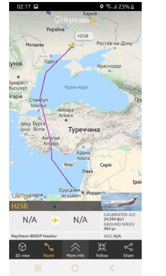 "О 02:30 із Тель-Авіва в аеропорт Дніпра прилетів літак групи "Приват" з бортовим номером UR-PRT. Про пасажирів поки інформації немає", - написав він.