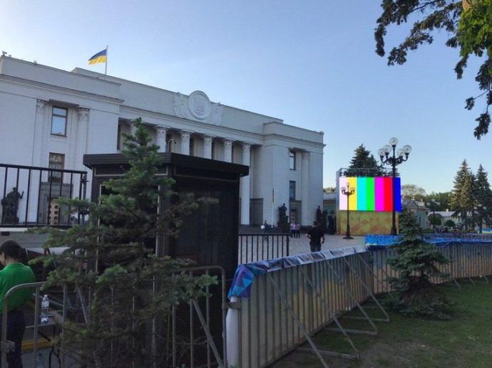 В урядовому кварталі триває підготовка до інавгурації президента: Володимир Зеленський бере участь в репетиції церемонії поблизу будівлі Верховної Ради pic.twitter.com/PCSGaSVcy9
