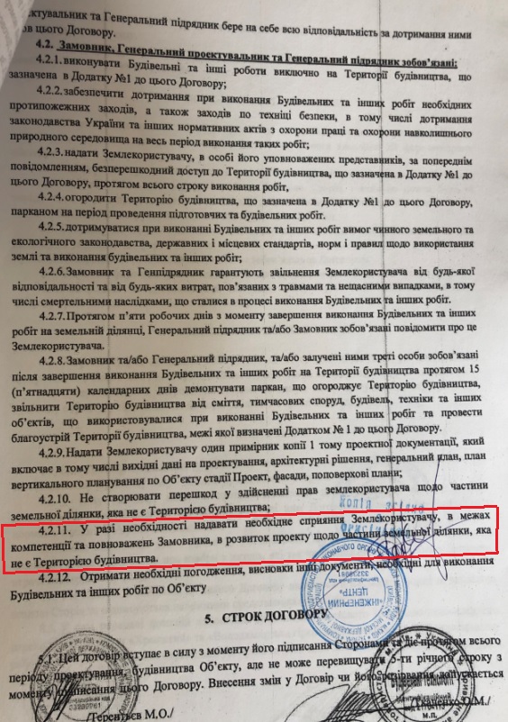 У свою чергу у КМДА зобов’язалися "у разі необхідності надавати необхідне сприяння землекористувачу" в розвитку проекту на орендованій ділянці.