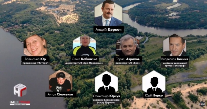 "Серед 23 осіб, що безкоштовно отримали землю на першому етапі, вже тоді були переважно деркачівськи кадри. Група працівників його ТРК "Ера", група помічників нардепа, представники компаній партнерів Деркача, тощо. Зокрема два нинішні власники, Сімоненко і Берко, які пізніше акумулювали ділянки від інших "селян"", - додали автори..