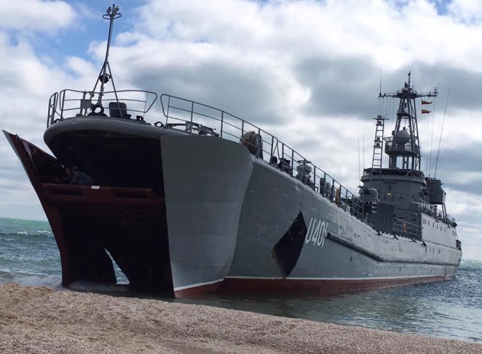 Як можна зрозуміти з фотографій, що додаються до повідомлення, в навчаннях було задіяно середній десантний корабель ВМС ЗСУ "Юрій Олефіренко".