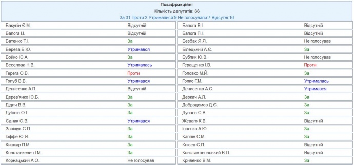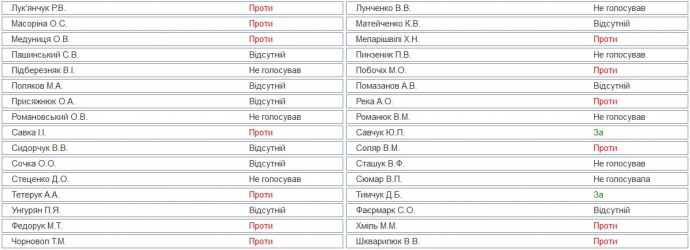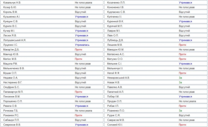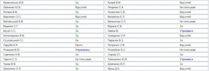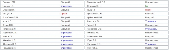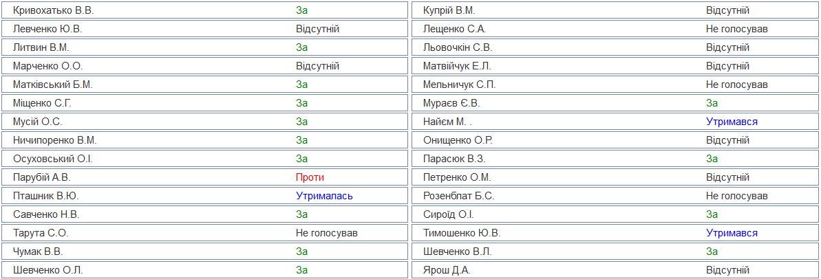 Про це свідчать детальні результати голосування, опубліковані на сайті парламенту.