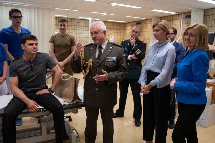 Дружина президента Олена Зеленська відвідала українських військових, які у Брюсселі проходять реабілітацію внаслідок кульових поранень.