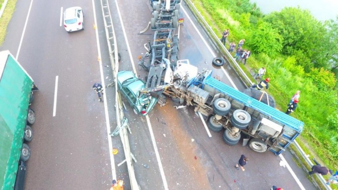 Потрійна аварія: на трасі Київ-Чоп зіткнулися маршрутка, вантажівка і легковик