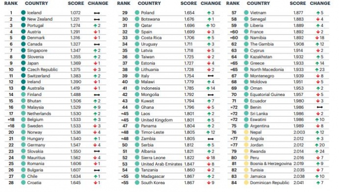 Всього в рейтингу 163 країни.
