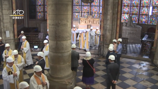 Згідно з інформацією, богослужіння в честь освячення вівтаря відбулося в каплиці собору, яка не була охоплена пожежею. Участь у месі взяли 30 людей, більшість з яких — священники.