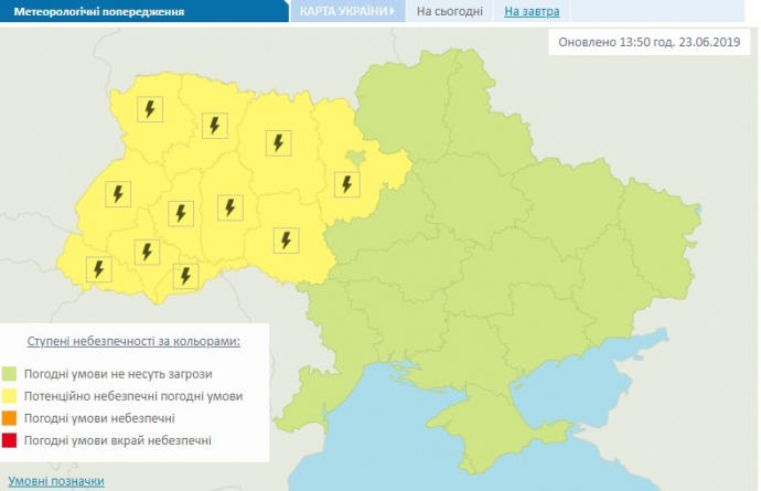 У зв'язку з погодними умовами 23 червня можливе формування значного схилового та мiсцевого стоку, а також локальних селiв.