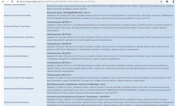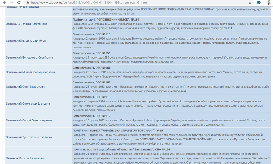 На виборах зареєстровано 8 Зеленських – голова ЦВК