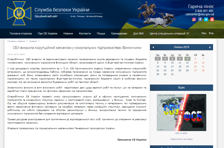 Прес-служба СБУ у п’ятницю ввечері повідомила про причетність віце-прем’єр-міністра України до механізму привласнення бюджетних коштів на Вінничині, однак згодом повідомлення зникло з сайту та Facebook-сторінки СБУ.