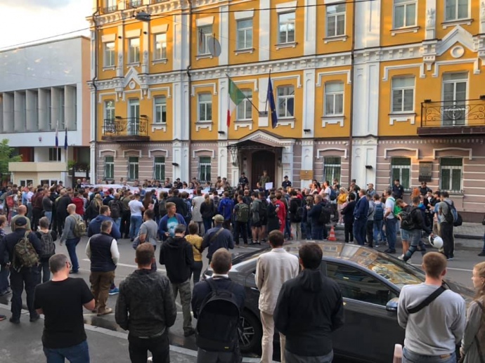 Під посольством Італії акція протесту: вимагають звільнити нацгвардійця