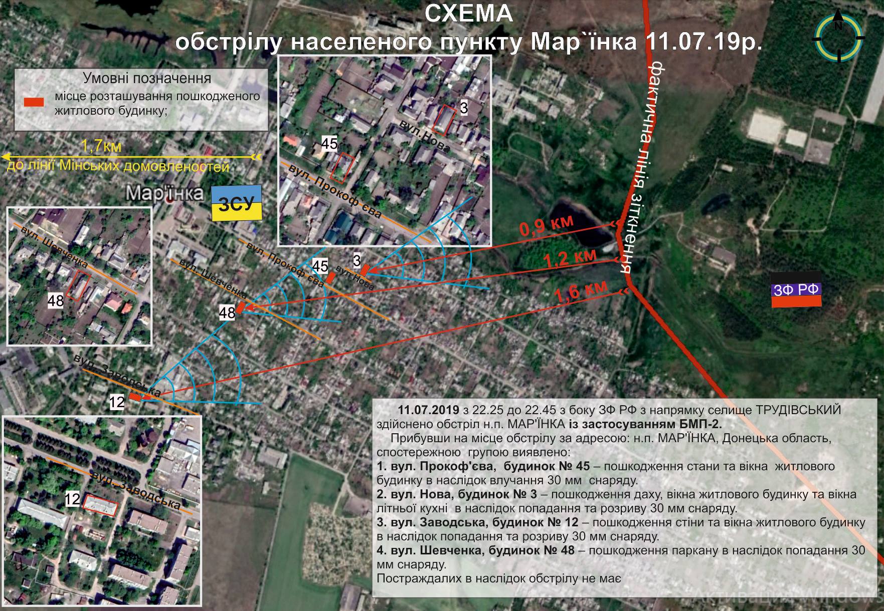 Обстріл вівся пізно ввечері 11 липня. Встановлено, що противник вів вогонь з напрямку селища Трудівський.