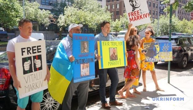 Представники української громади вийшли під стіни італійського консульства у Нью-Йорку, вимагаючи звільнити українського нацгвардійця Віталія Марківа pic.twitter.com/5gIGW74gvd