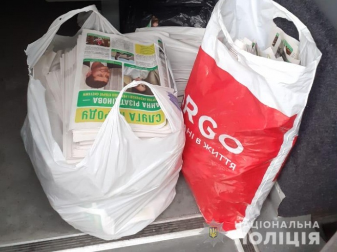 Поліція вилучила 44 тисячі примірників агітматеріалів за кандидатів у нардепи нібито від партії "Слуга народу" на Київщині у 93 окрузі.