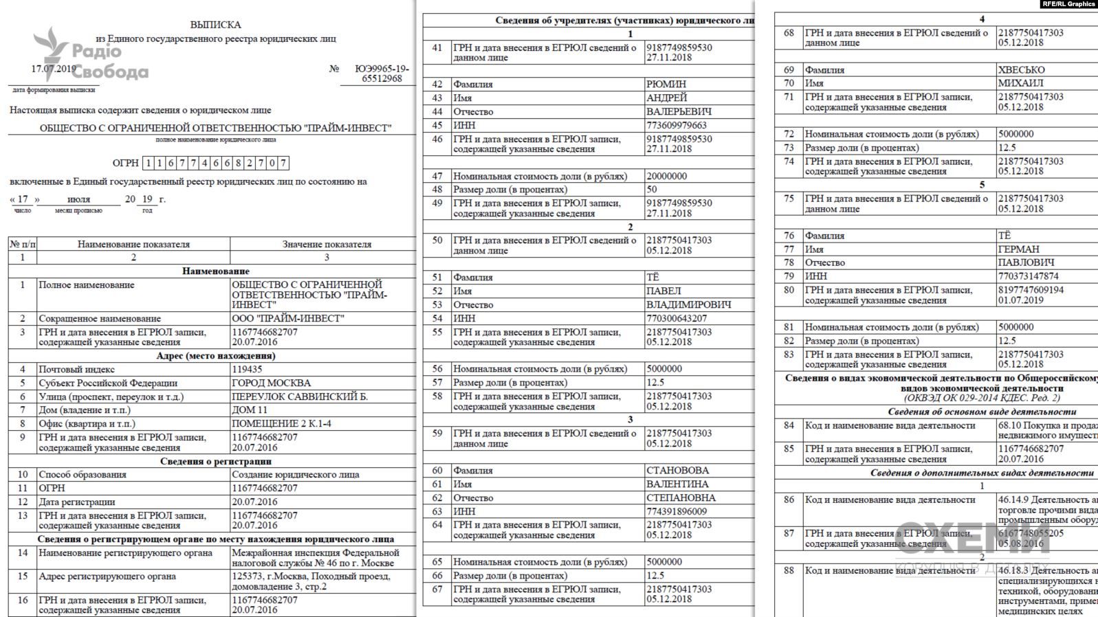 Крім Рюміна, який володіє часткою в 50%, співзасновниками "Прайм-Инвест" виступили бізнесмен-забудовник Павло Тьо, його син Герман Тьо, Валентина Становова та Михайло Хвесько.