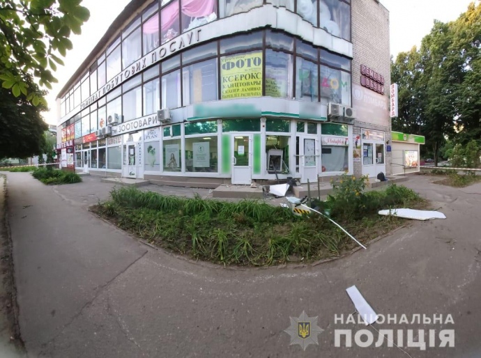 В аналогічний спосіб невідомі підірвали банкомат, розташований по вулиці Шевченка у Люботині.