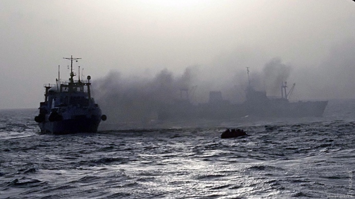 Судно вигоріло практично повністю і продовжує горіти. На ньому знаходиться дизельне паливо і повний трюм рибної продукції.