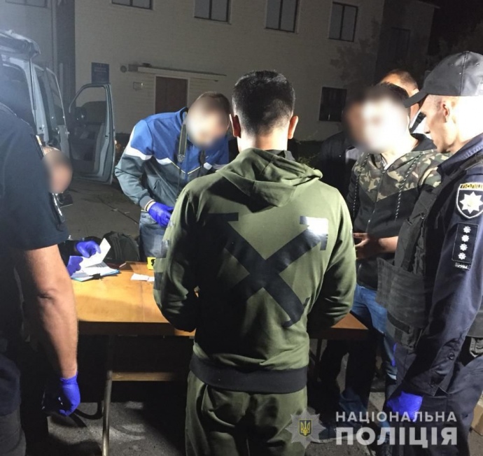 У правопорушників виявили холодну зброю, електрошокери, балончики зі сльозогінним газом, балаклави та документацію, у тому чисті бланки охоронної фірми.