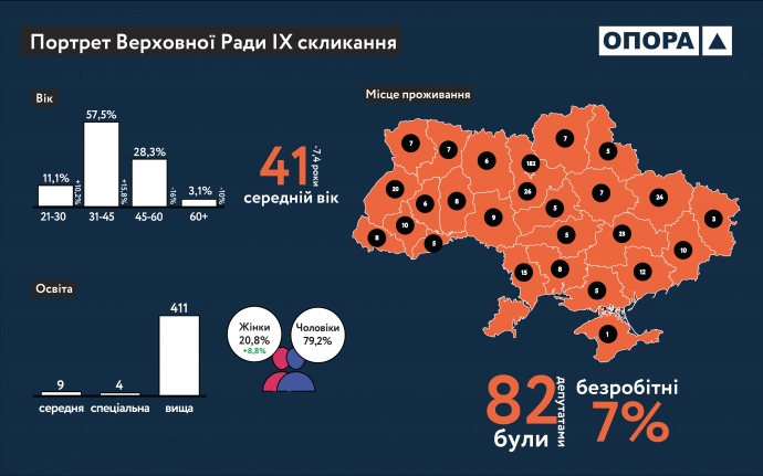Середній вік народних депутатів Верховної Ради ІХ скликання на 7 років знизився в порівнянні з попереднім скликанням парламенту.