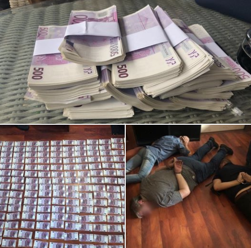 У ході слідчих дій правоохоронці виявили та вилучили майже 2 тисячі купюр з ознаками підроблення номіналом по 500 євро на загальну суму 998 тисяч євро.