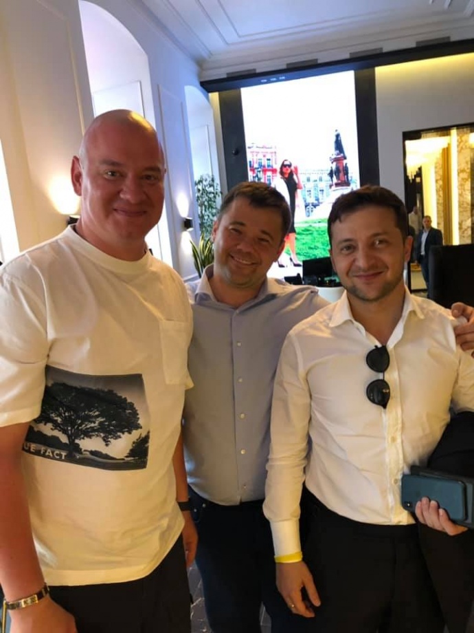 Після концерту глава ОП Андрій Богдан виклав на своїй сторінці у Facebook спільне фото з Зеленським та ведучим "Ліги сміхи" Євгеном Кошовим з підписом: "Президент, председатель ОПУ и премьер-министр".