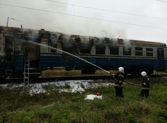 На перегоні Браїлів – Жмеринка у Вінницькій області спалахнув один із вагонів електрички "Козятин-Жмеринка", пасажирів одразу евакуювали.