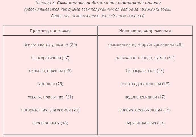 На запитання соціологів про якості, що характеризують радянську владу, 29% росіян назвали її "близькою до людей", 25% – сильною, міцною, 22% – справедливою.