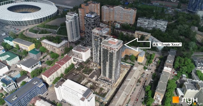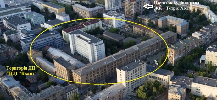 Слідчі вказують, що будівництво ЖК "Тетріс Холл" здійснюється на прилеглій території Держпідприємства "Науково-дослідний інститут "Квант", який входить до підприємств оборонно-промислового комплексу.
