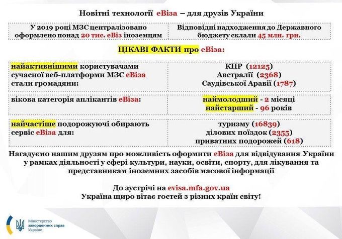 За інформацією, яку він оприлюднив, у 2019 році МЗС централізовано оформив понад 20 тисяч електронних віз іноземцям.