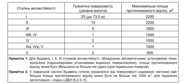 У нових змінах в ДБН зберігаються вимоги щодо ступеню вогнестійкості будівель готелів та допустимих при цьому кількості поверхів та площі протипожежних відсіків.