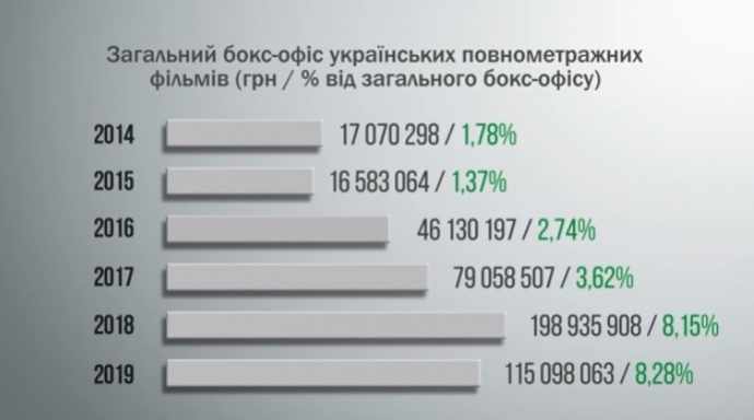 Деталі: Пилип Іллєнко опублікував звіт, де зазначив що з 2014 по 2019 роки у прокат вийшли 110 вітчизняних повнометражних фільмів. Касові збори цих фільмів загалом становлять близько 473 млн.грн. Подивились ці фільми - 8 094 789 глядачів.